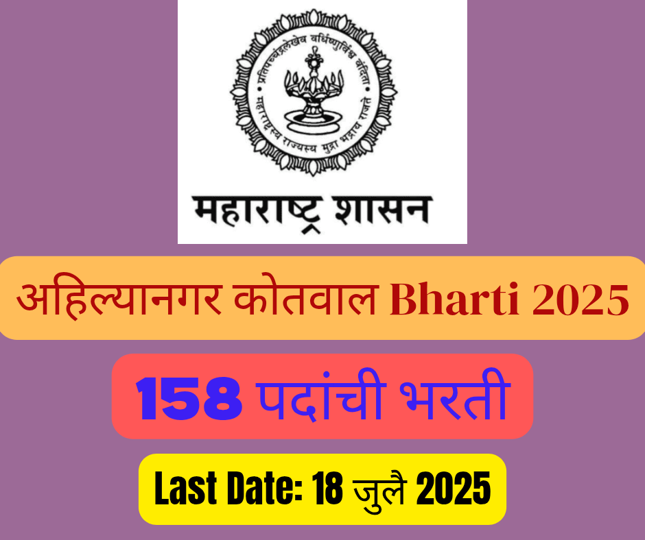 Aahilyanagar Kotwal Bharti 2025 ही स्थानिक उमेदवारांसाठी उत्कृष्ट संधी आहे. 4 थी उत्तीर्ण उमेदवारांना गावातील महसूल सेवेत सामील होण्याची सुवर्णसंधी आहे. वेळ वाया न घालवता लवकर अर्ज करा.
